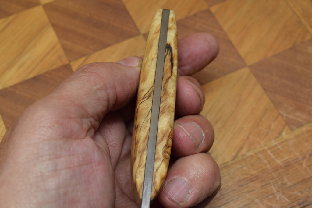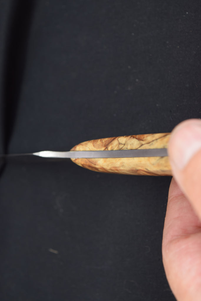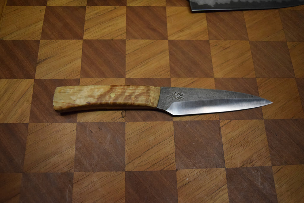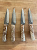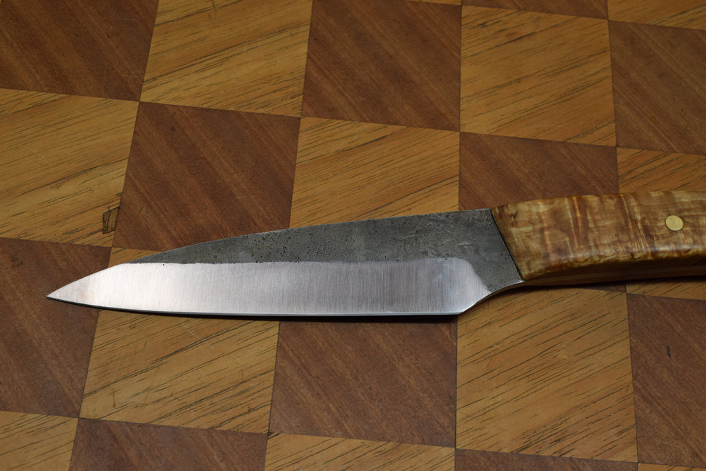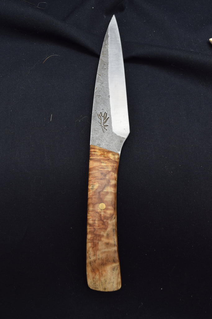 Recycled high carbon steel with stabilized Karelian Birch handles.
